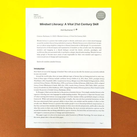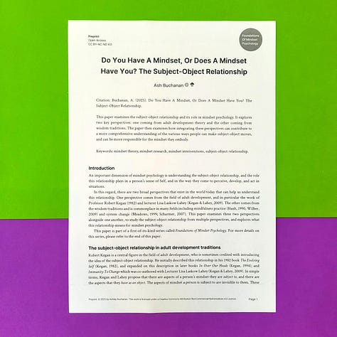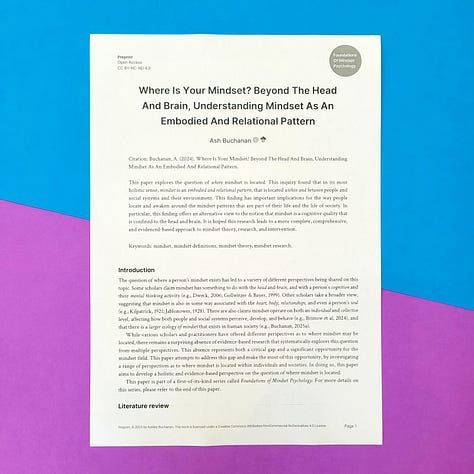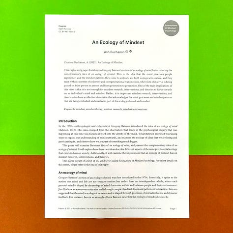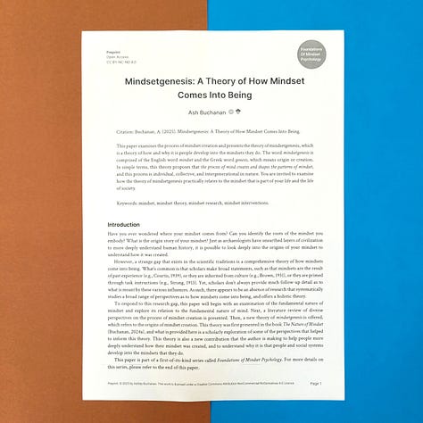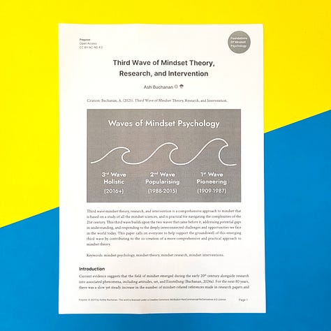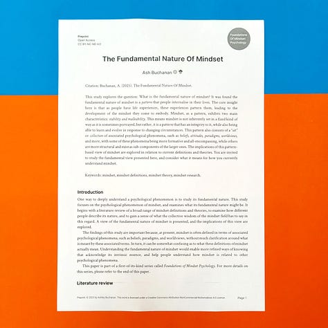 Essentially, each paper in this series takes one key idea from my research and gives it space to breathe. The purpose was also to create a concrete example of what a comprehensive approach to mindset psychology might look like. As far as I am aware, this is the first time such a series of scholarly papers has ever been published on the topic of mindset, which is kind of exciting. 🎉