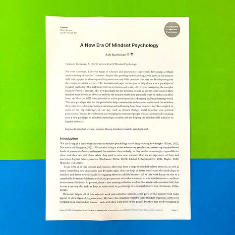 Today, I'm thrilled to announce a new series of 20 (yes 20!) research papers called the Foundations of Mindset Psychology.